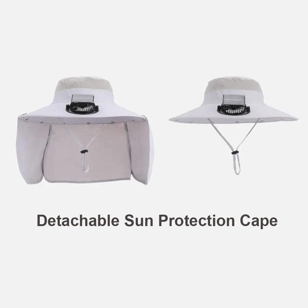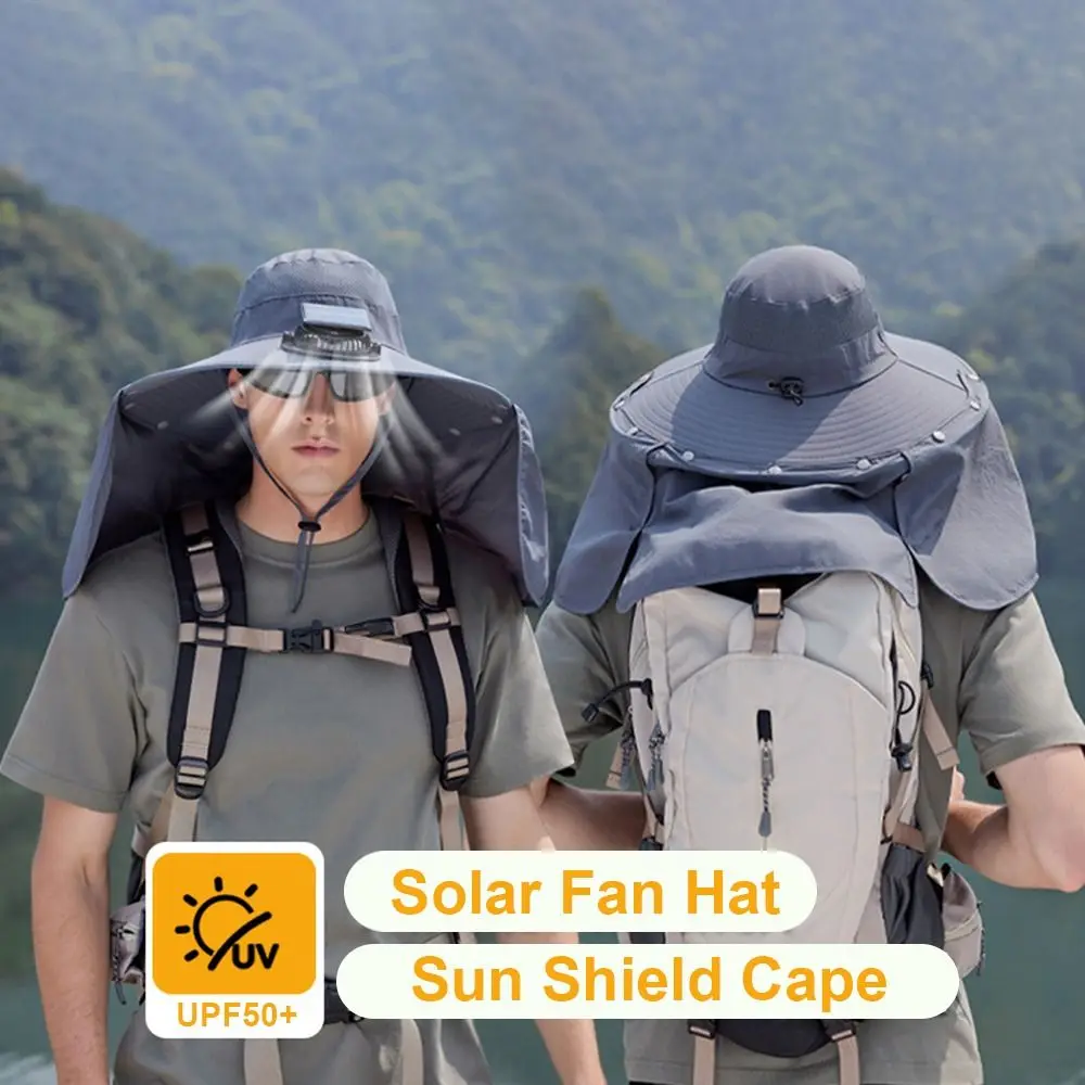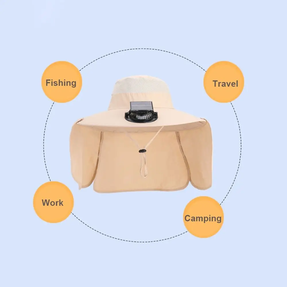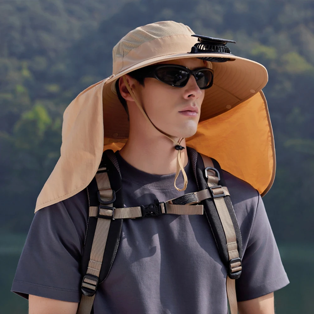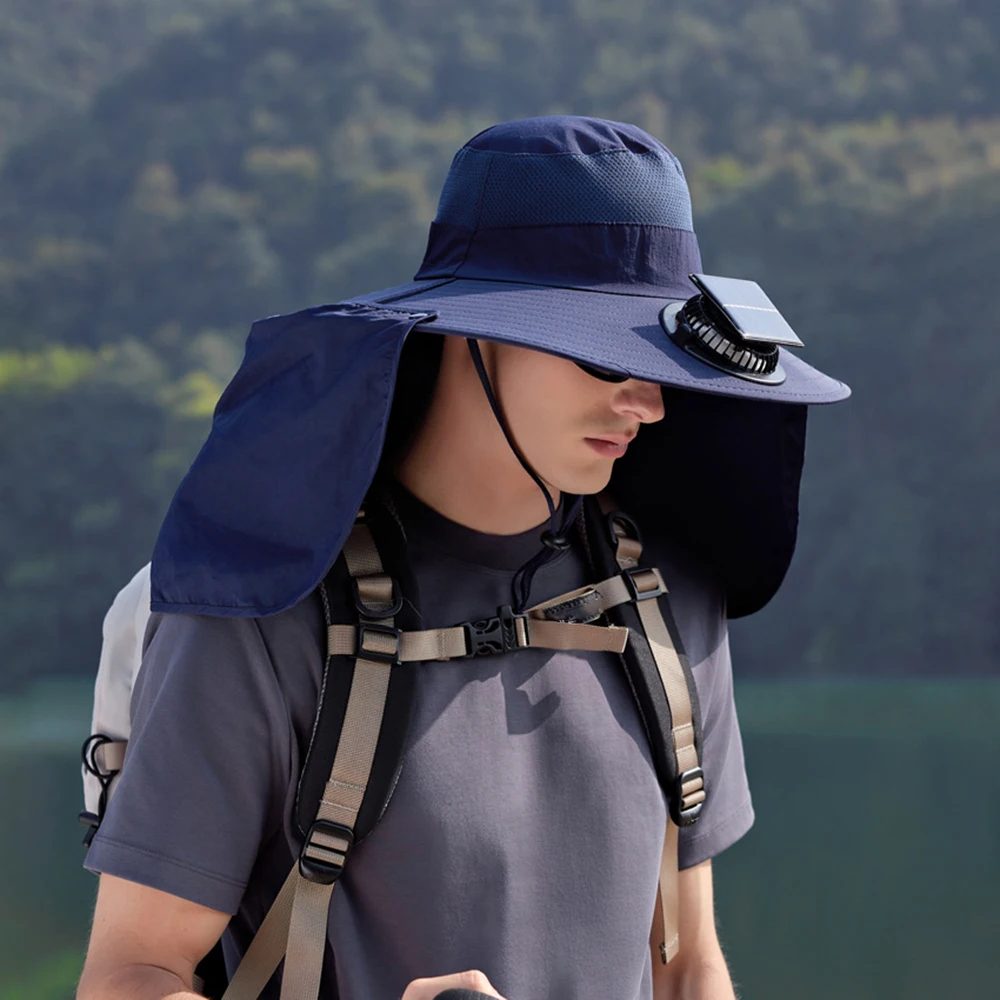 Solar Fan Outdoor Hat: This upgraded wide-brim Solar Fan outdoor fishing hat is designed to be worn on the head, freeing your hands. A mini fan is built into the front of the brim to cool the face. You can hang an outdoor fishing sun hat around your head and carry it with you without feeling tired or uncomfortable.