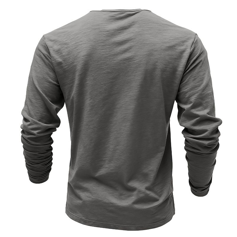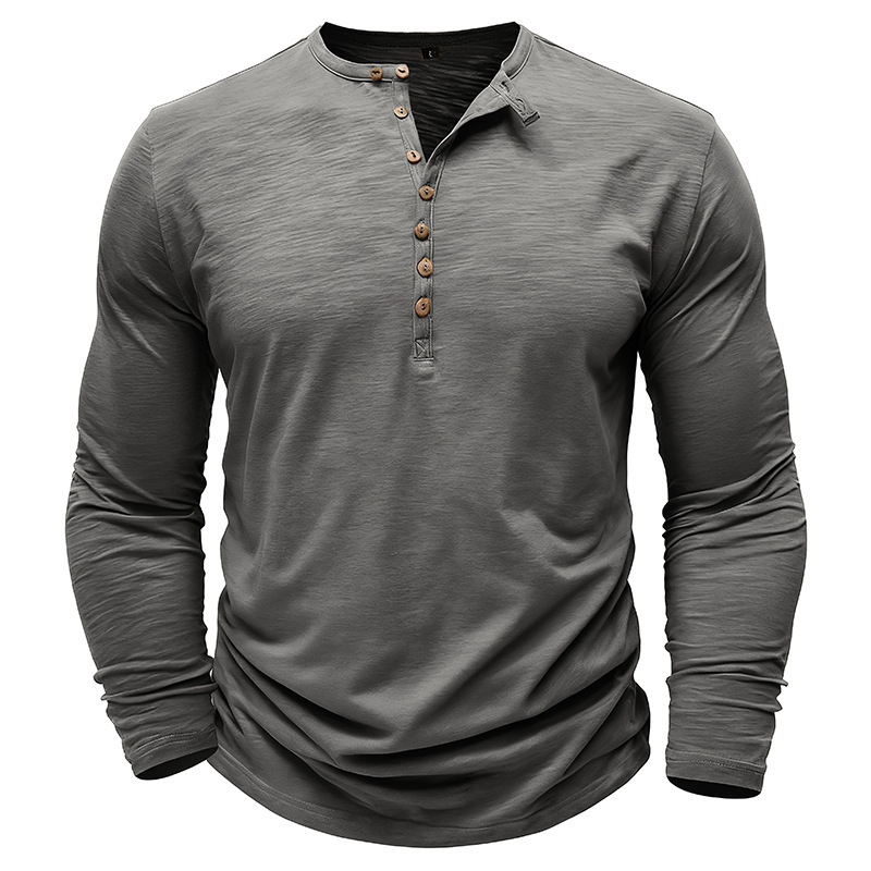 • Henley Collar Design: A round neckline with button placket, positioned between a T-shirt and a polo shirt, offering a casual yet refined look